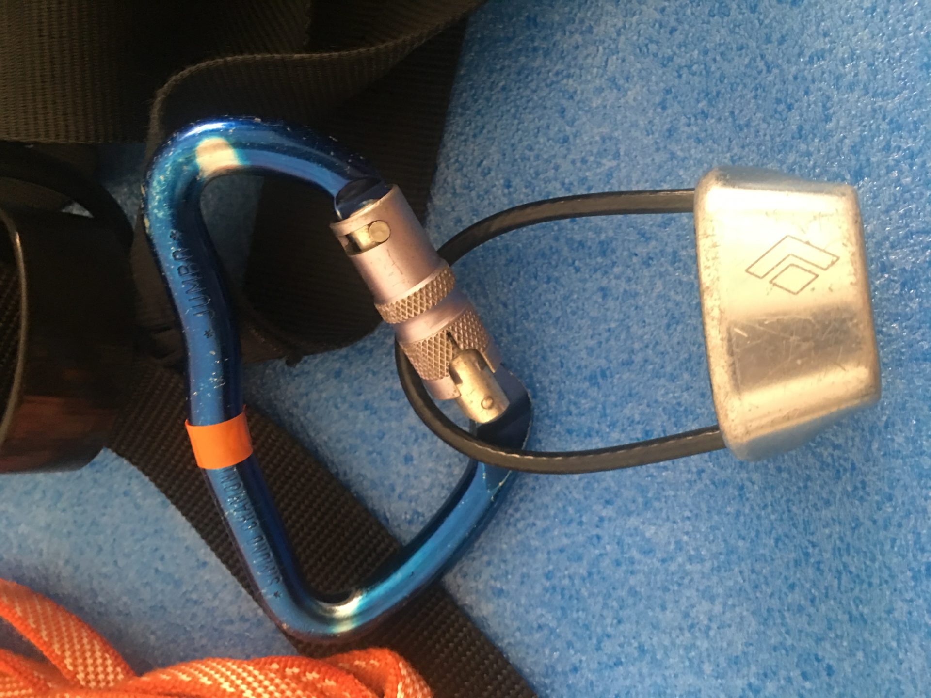 ・カラビナ=安全環付きカラビナ(ナス環、下降器とセットで使用)、普通のカラビナ2個