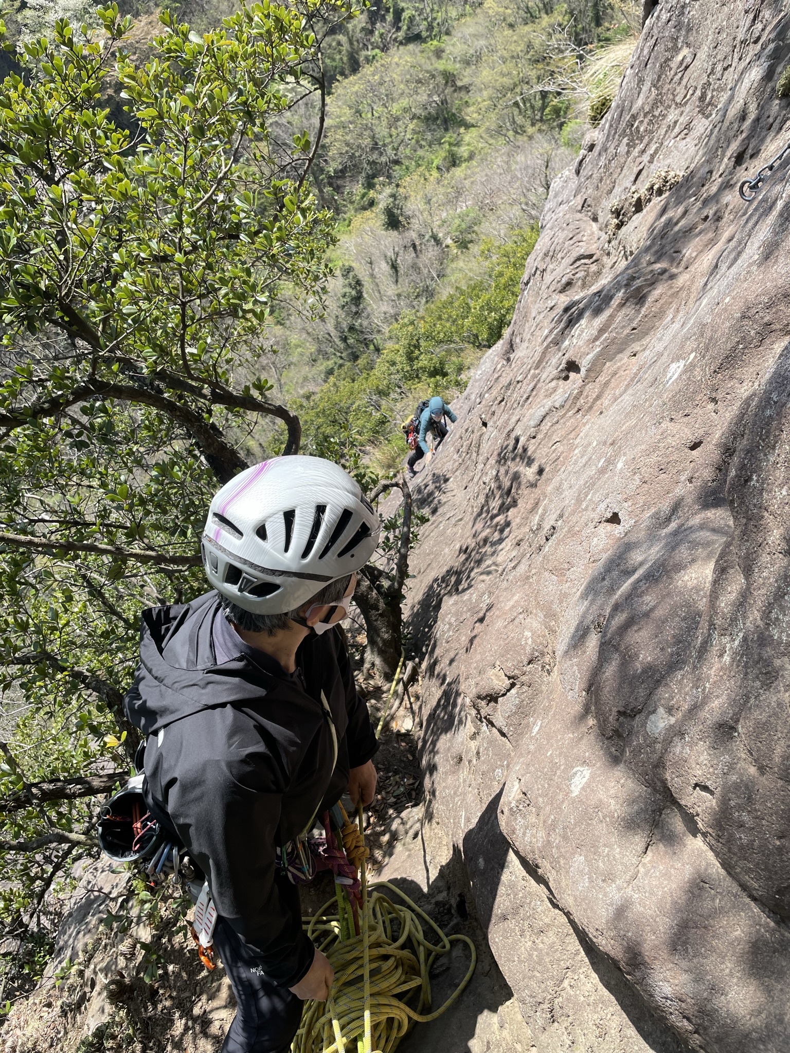 2022.04.27 2022.05.24 クライミング 城山・西南カンテ yoidoreyamaoyaji ツイート メンバー:YoidoreYamaoyaji,Purin,Medaka,Kyon 2022/04/16 伊豆の城山西南カンテを4人で登攀。春の好天に恵まれて、まさにポカポかクライミングを楽しむことができた。 YoidoreYamaOyaji Channel 1ピッチ目 中央部から上が核心。グレードより難しく感じるリードのPurinは無難にクリアー 2ピッチ目。気温は低くはないが待つ間、強風にさらされ寒かった! 3ピッチ目のトラバース。高度感たっぷりだが落ち着いて足元を確認しながら進めばOK 3ピッチ目、逆方向から 4ピッチ目。九の字のクラック。クラックから出る時が怖~い! 共有:シェア 印刷 (新しいウィンドウで開きます) 印刷 Facebook で共有 (新しいウィンドウで開きます) Facebook X で共有 (新しいウィンドウで開きます) X いいね:いいね 読み込み中… ABOUT ME YoidoreYamaOyaji山と酒を愛するYoidoreYamaOyaji。「人生はうちなる未踏峰である」を座右の銘に、山を歩く。日本100高山をPurinとともに2019年に富士山、御岳山で踏破。「100のピークに100のドラマあり」を知る。加齢とともに山は逃げるものだと実感している今日このごろ。