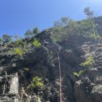 この日の暑さは半端なく、さらにアブやら何やら大きな羽音を響かせて飛び回る虫も飛来するので、どうも集中力をそがれてしまう。そんなことも含めて、本チャンなみにじっくりと課題に向き合うことができたので、一堂よしとした。次は5.10aにトライしよう!
